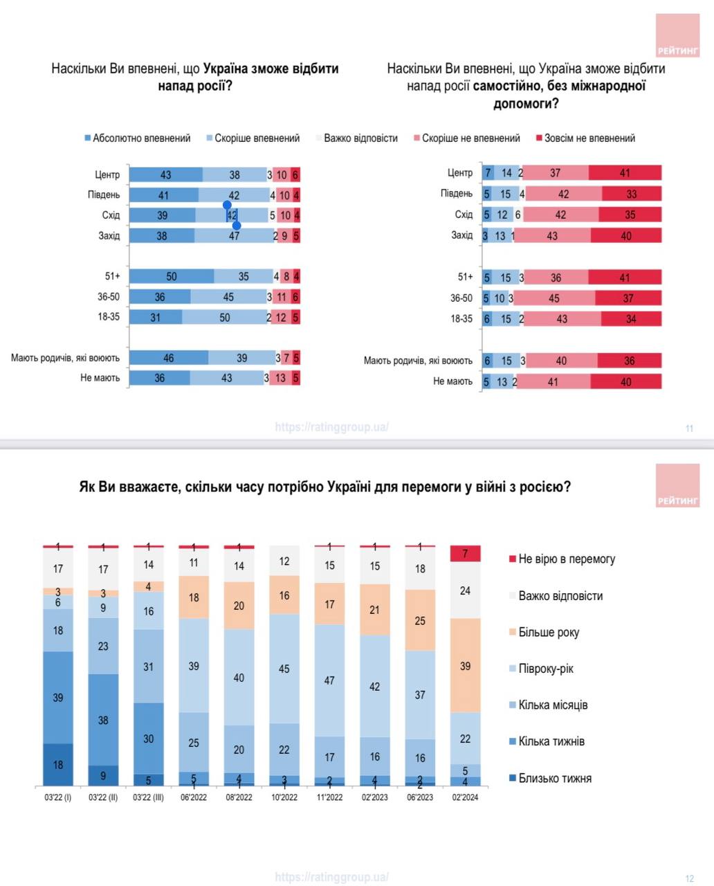 Еще 43% заявляют, что они "скорее уверены" в этом. Месяц назад эти цифры составляли соответственно 45% и 39%, а в октябре 2022-го - 74% и 22%.