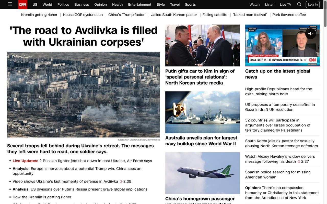 12.37 "Дорога на Авдеевку завалена трупами украинцев", - такой заголовок сейчас на главном материале на сайте CNN.