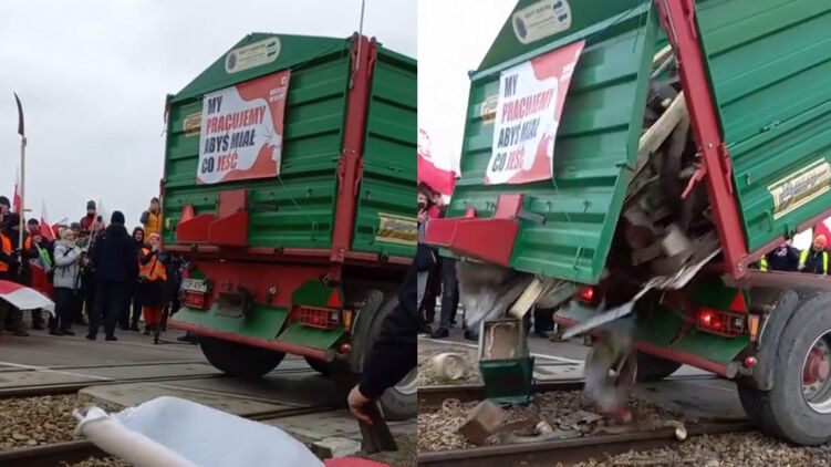 На границе с Украиной польские фермеры высыпали на железнодорожные пути строительный хлам. Видео