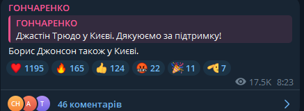 "Борис Джонсон также в Киеве", - написал Гончаренко.