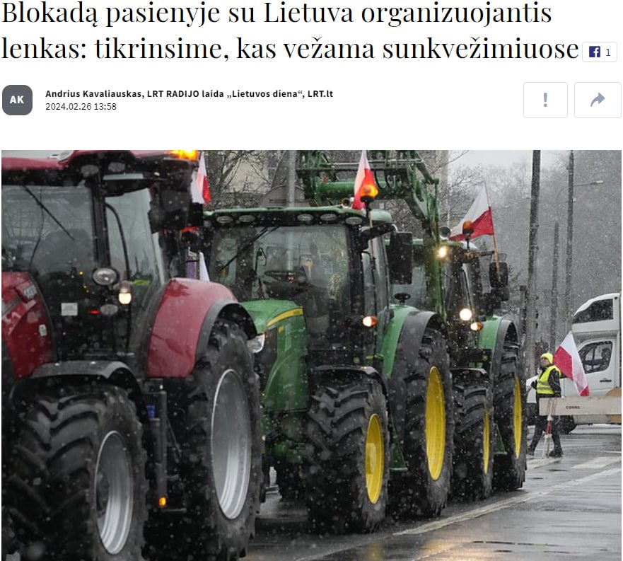 В пятницу, 1 марта, польские фермеры планируют заблокировать контрольно-пропускной пункт на границе с Литвой. Они будут останавливать и проверять все транспортные средства, которые могут перевозить украинское зерно.