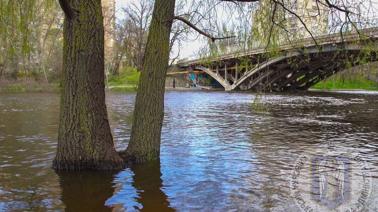 В результате увеличения сбросов воды из Киевского водохранилища из-за весеннего половодья на реке Днепр в пределах Киева наблюдается повышение уровня воды, примерно на 6 см в сутки, с начальным затоплением поймы.