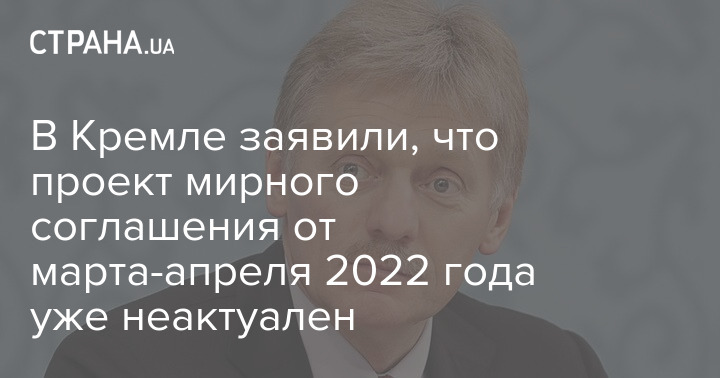 Пресс-секретарь президента РФ Дмитрий Песков заявил, что проект мирного соглашения от марта-апреля 2022 года уже неактуален.