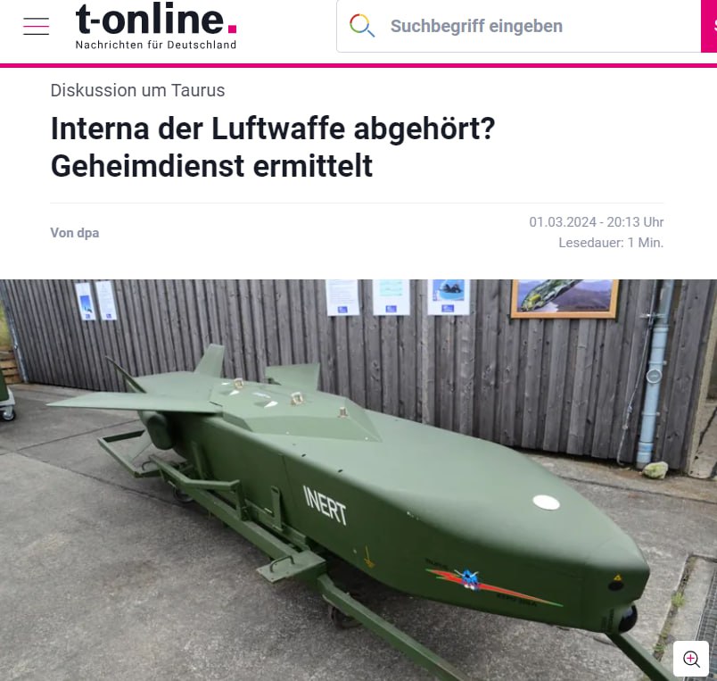 Минобороны ФРГ инициировало проверку по поводу возможного перехвата сообщений немецких ВВС о теоретическом использовании ракет Taurus.