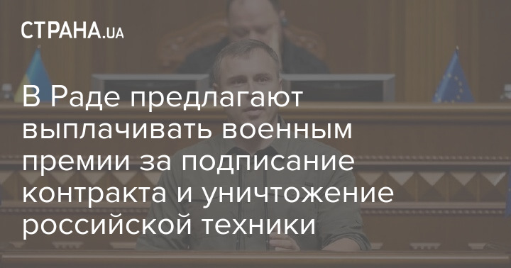 В Раде предлагают выплачивать военным премии за подписание контракта и уничтожение российской техники