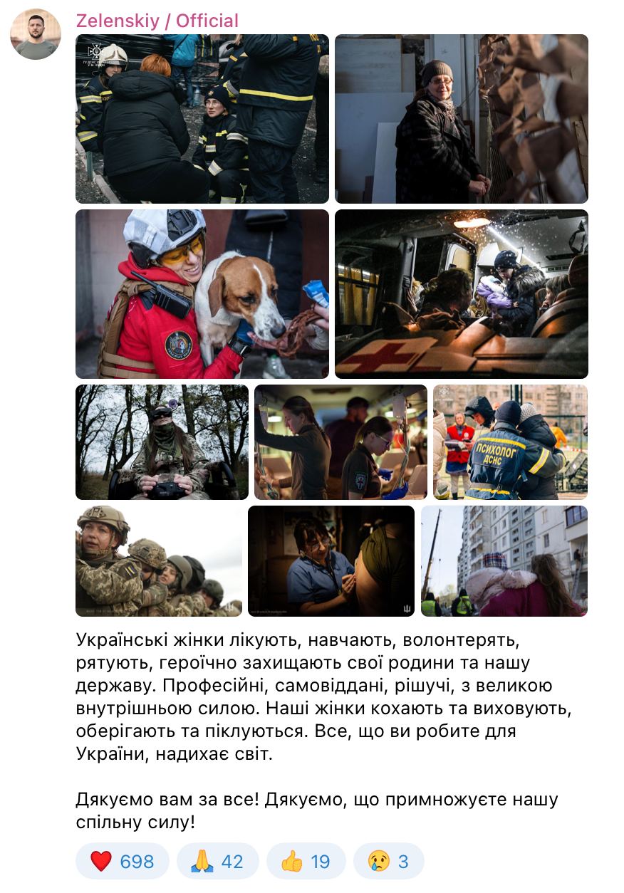 В пятницу, 8 марта, президент Украины Владимир Зеленский опубликовал пост с благодарностью украинским женщинам.