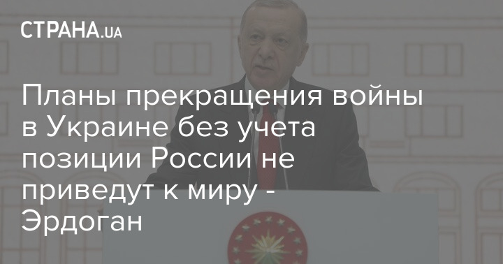 Президент Турции Реджеп Тайип Эрдоган считает, что планы урегулировать конфликт в Украине, игнорирующие позицию России, к миру не приведут.