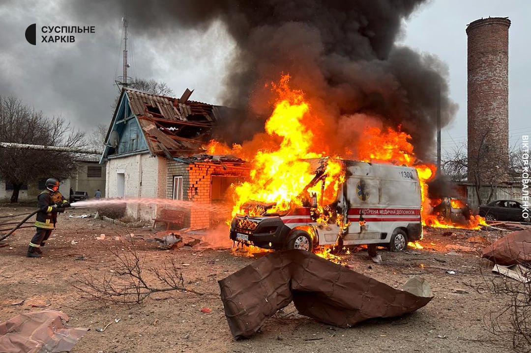 "В результате удара уничтожены помещения общежития и помещения пункта экстренной медицинской помощи. Повреждены помещения Золочевской больницы. Уничтожены 2 автомобиля бригады скорой, 2 частично повреждены. Без пострадавших", – написал глава ОВА.