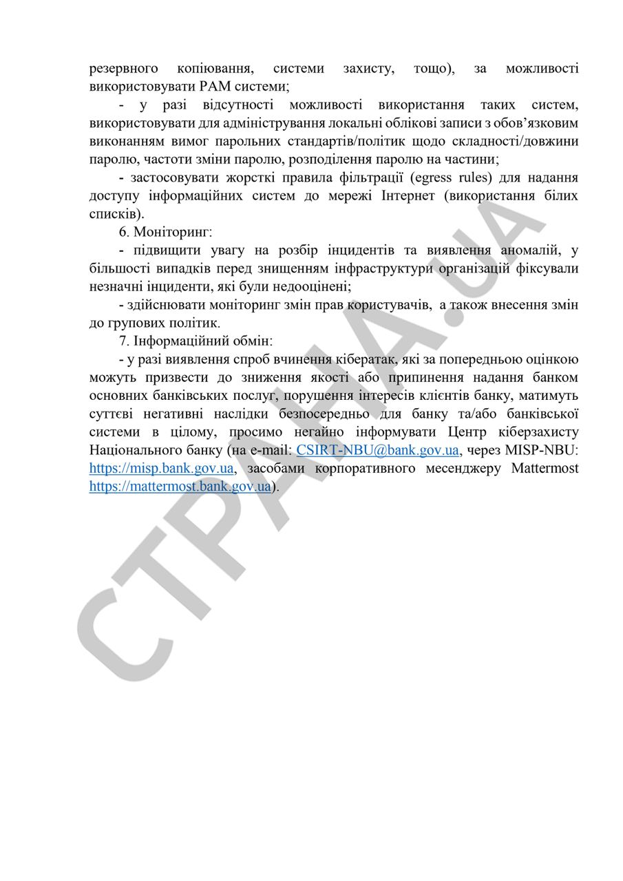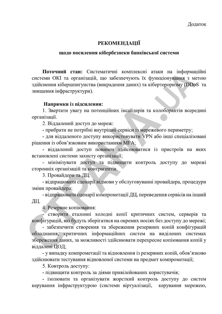 Об этом говорится рекомендациях НБУ "В отношении усиления кибербезопасности банковской системы", которые разослал регулятор.