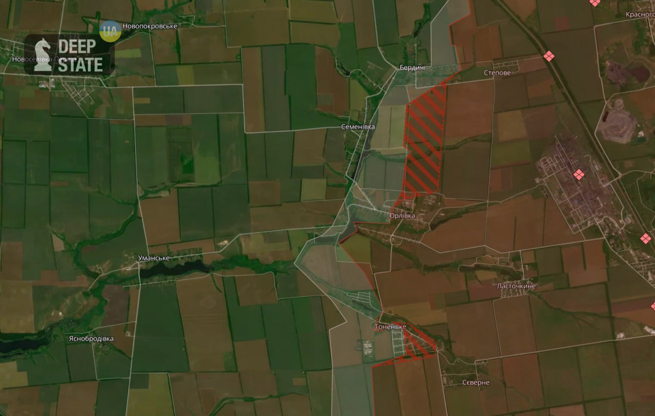 Об этом сообщает украинский военный телеграм-канал Deep State, публикуя обновленную карту.