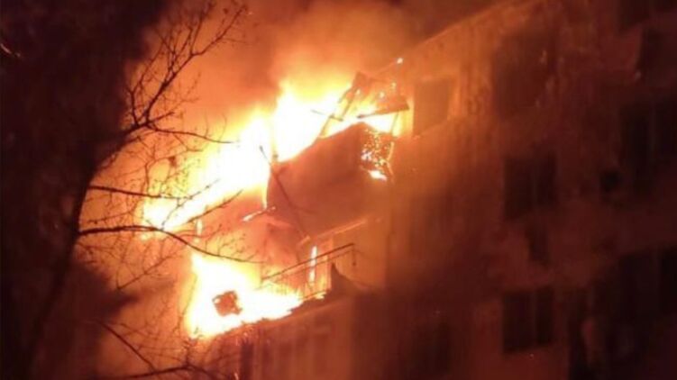 В Херсоне во время ночного российского обстрела загорелась пятиэтажка