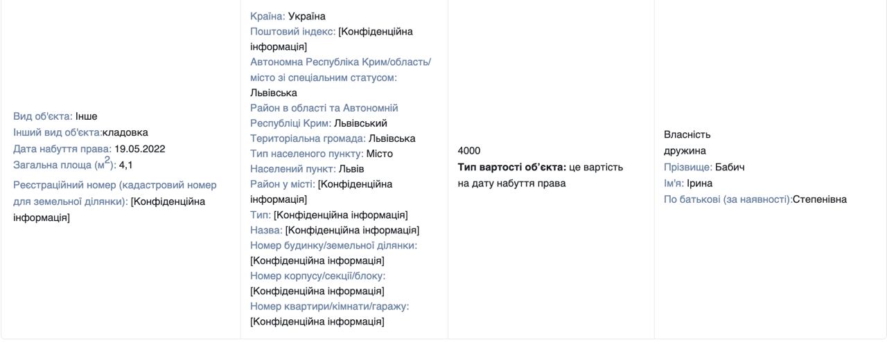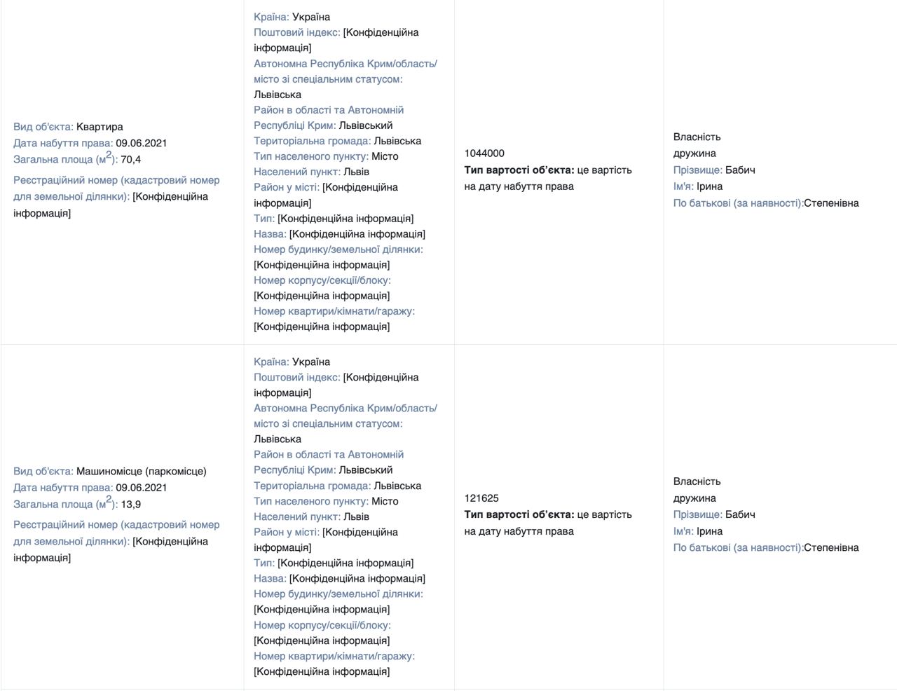 В собственности самого Бабича числятся только два земельных участка. Два жилых дома и земельный участок во Львовской области он переписал на свою дочь-студентку.