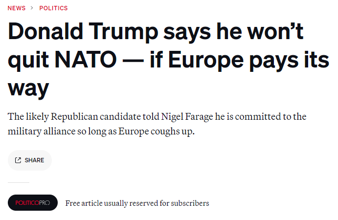 Напомним, он требует от стран Европы увеличить расходы на оборону.