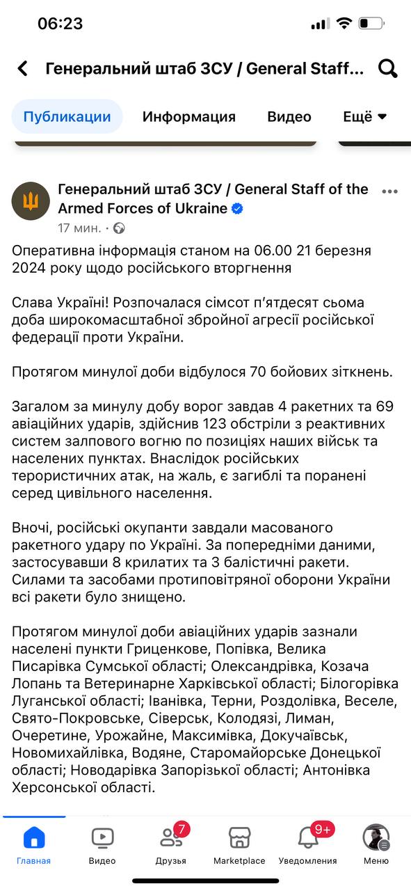 В четверг, 21 марта, в Украине идет 757-й день войны с Россией.