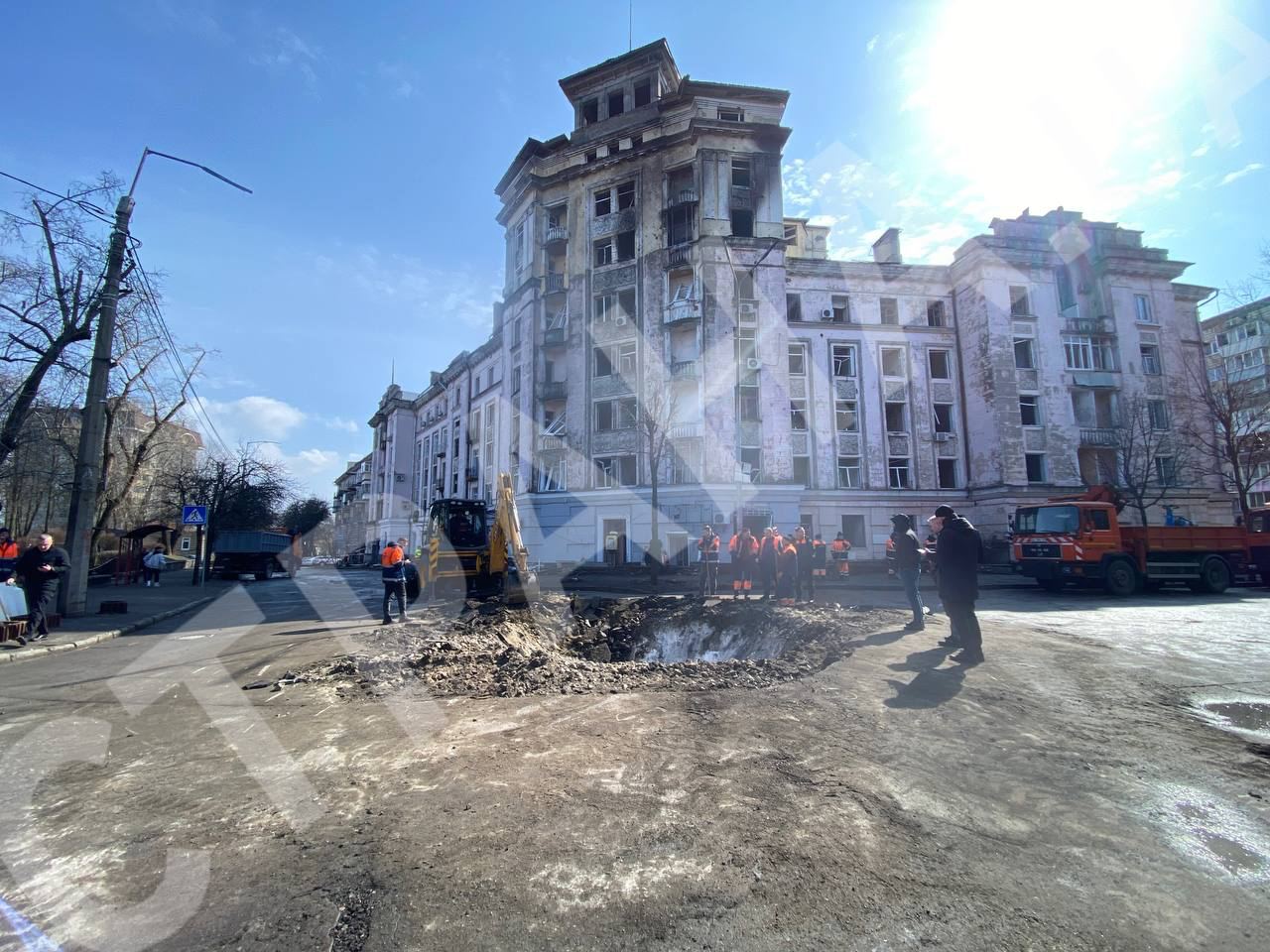 10.59 Утренние кадры с места вчерашнего прилета по типографии в Харькове.