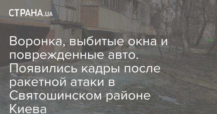 Воронка, выбитые окна и поврежденные авто. Появились кадры после ракетной атаки в Святошинском районе Киева
