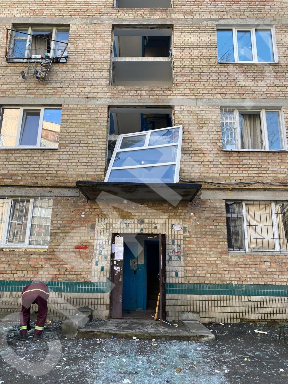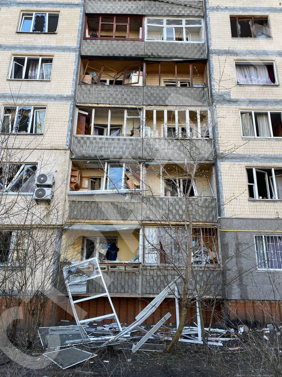Появились кадры в Святошинском районе Киева после ракетной атаки 21 марта.
