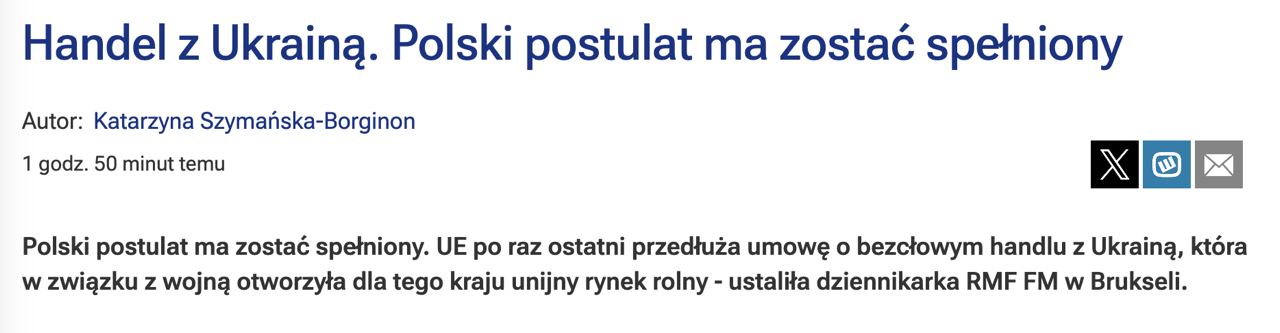 Также мы писали о том, что новый министр сельского хозяйства Польши выступил против беспошлинной торговли ЕС с Украиной.
