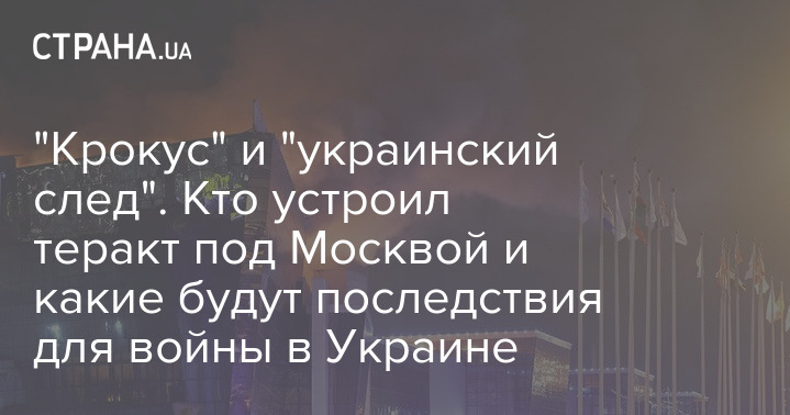 Версия Украины. В Киеве заявили, что теракт в "Крокусе" организовал сам Кремль для оправдания эскалации войны в Украине.