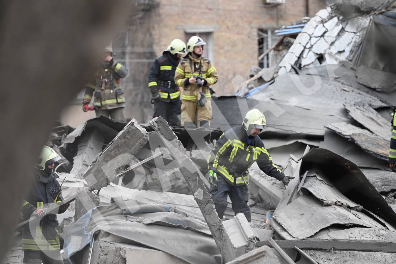 На месте прилета в Киеве начался разбор завалов. Под завалами могут быть люди, сообщает ГСЧС.