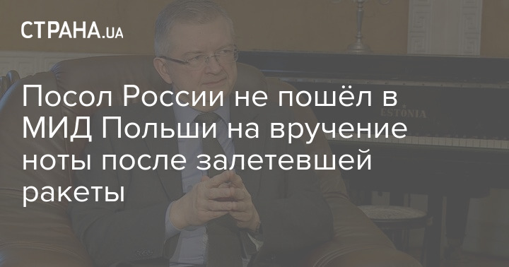 Посол России в Польше Сергей Андреев отказался являться в МИД страны на вручение ноты протеста из-за ракеты, пролетевшей вчера через польскую территорию.