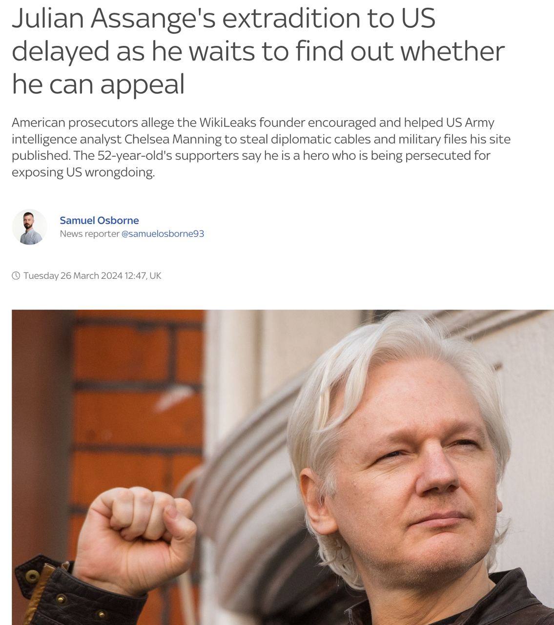Суд Британии отложил экстрадицию основателя Wikileaks Ассанжа в США - Sky News