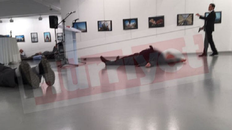 В понедельник в 18.00 по киевскому времени турецкие СМИ сообщили о вооруженном нападении на посла РФ в Анкаре Карлова во время его выступления с речью на открытии фотовыставки. По свидетельству очевидцев, террорист вошел в помещение, где проводилась выставка, в деловом костюме с галстуком, и был принят за охранника посла.