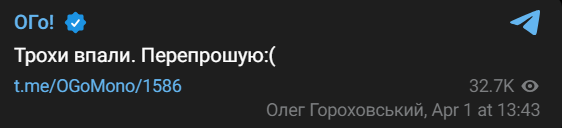 "Немного упали. Извините:(", - написал он в своем телеграм-канале.