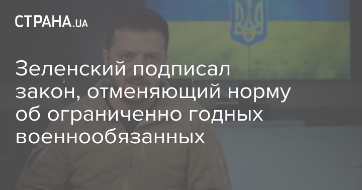 Президент Украины Владимир Зеленский подписал еще один закон - 10313, согласно которому отменяется норма об "ограниченно годных" военнообязанных.