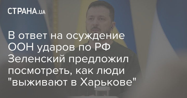 В ответ на осуждение ООН ударов по РФ Зеленский предложил посмотреть, как люди "выживают в Харькове"