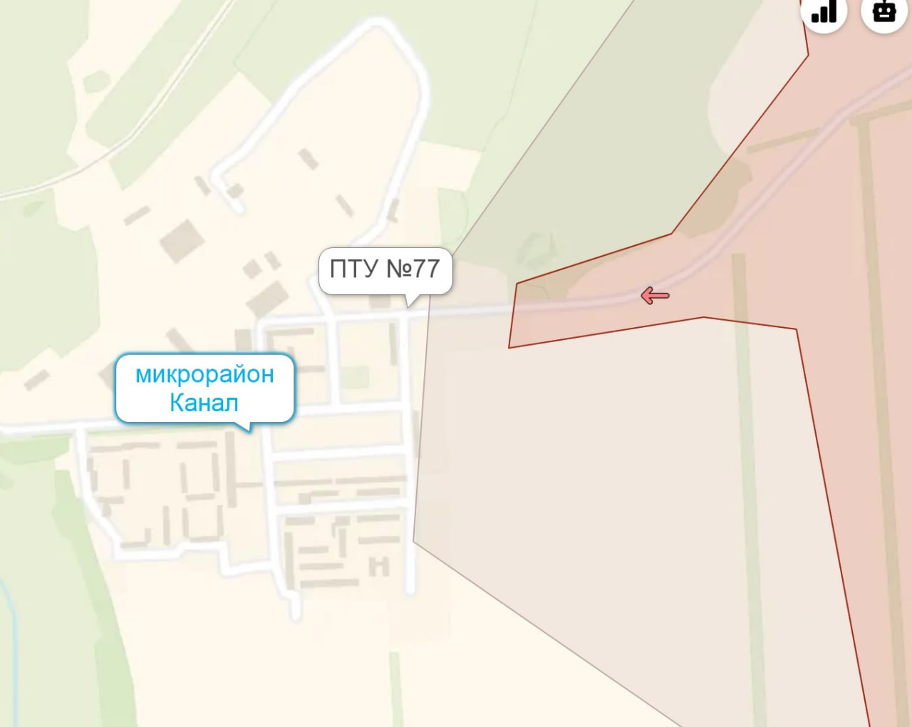 По их данным, десантники закрепились в лесу рядом с окраинными домами - недалеко от ПТУ №77 (на карте), а также стадиона.