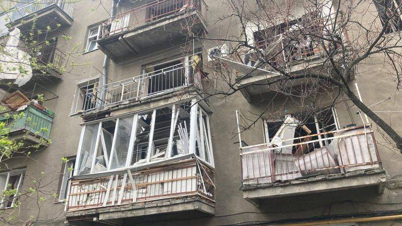 В результате ударов повреждено по меньшей мере 13 многоэтажек и частных домов, учебные заведения, кафе, общежитие, гостиница, автомобили, гаражи.