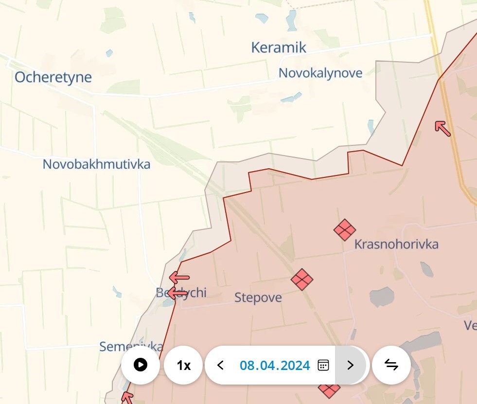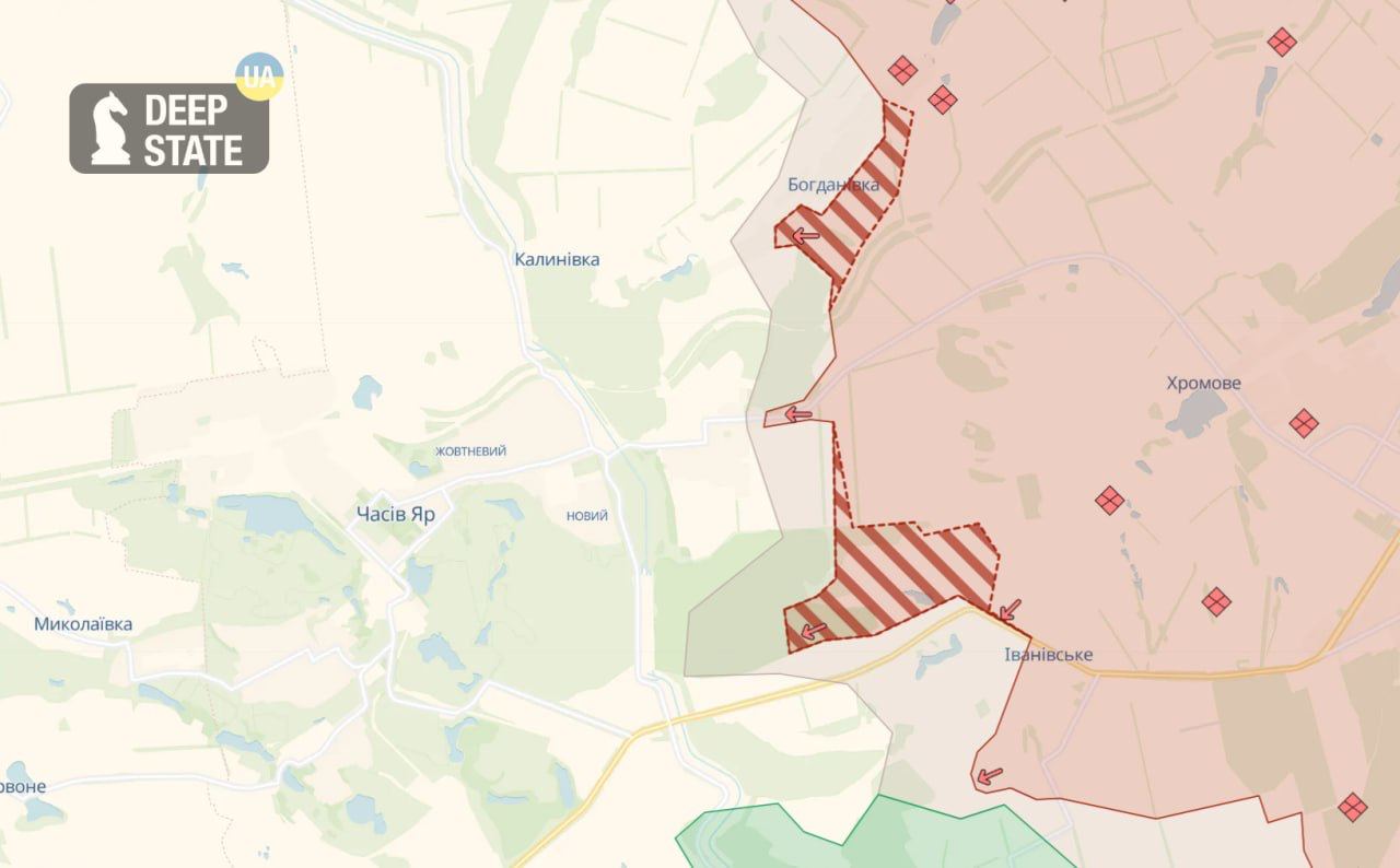 Армия РФ снова существенно продвинулась в направлении Часова Яра на Бахмутском направлении, сообщает украинский ресурс Deep State. А именно - в Богдановке и со стороны Ивановского.
