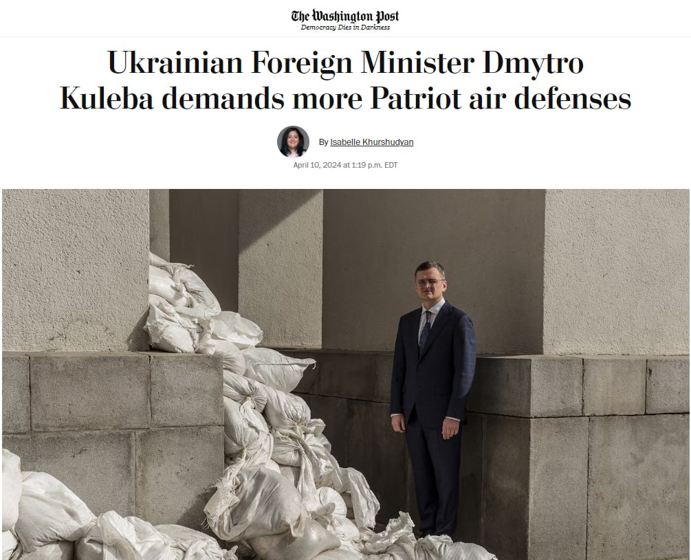 Во время недавней встречи в Брюсселе, посвященной 75-летию НАТО, Кулеба резко сказал присутствующим: "Мне жаль, что я испортил вечеринку по случаю дня рождения, но кто может поверить, что самый могущественный военный альянс в мире не может найти семь батарей "Patriot", чтобы обеспечить их единственной стране в мире, которая каждый день борется с баллистическими атаками?".