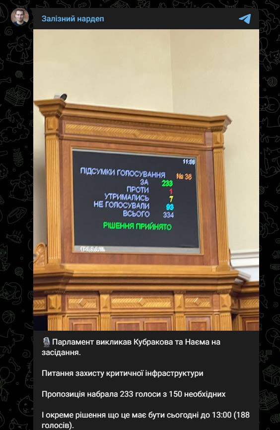 За предложение проголосовало 233 депутата из 150 необходимых, сообщил нардеп Ярослав Железняк.