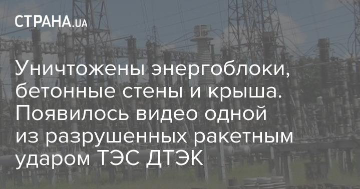 На видео показаны поврежденные энергоблоки и сгоревшие трансформаторы, разрушенные бетонные стены и проваленная крыша, оборудование превратилось в груду металлолома.
