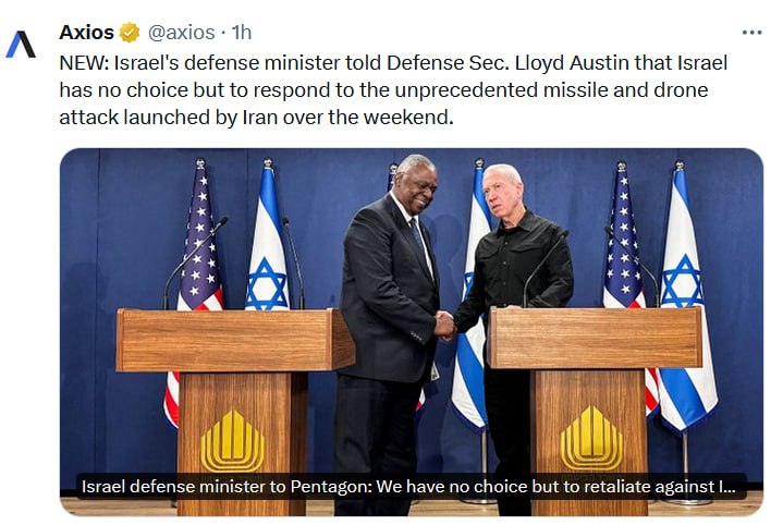 "У Израиля нет другого выбора, кроме как ответить на нападение Ирана", – заявил Галант.