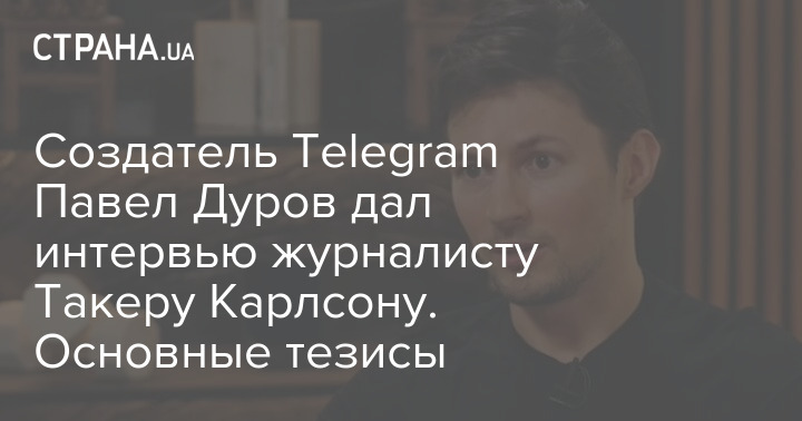 Создатель Telegram Павел Дуров дал интервью журналисту Такеру Карлсону. Основные тезисы
