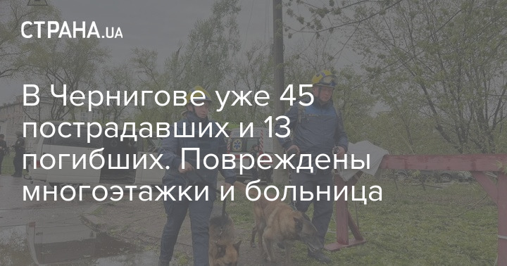 В Чернигове уже 45 пострадавших и 13 погибших. Повреждены многоэтажки и больница