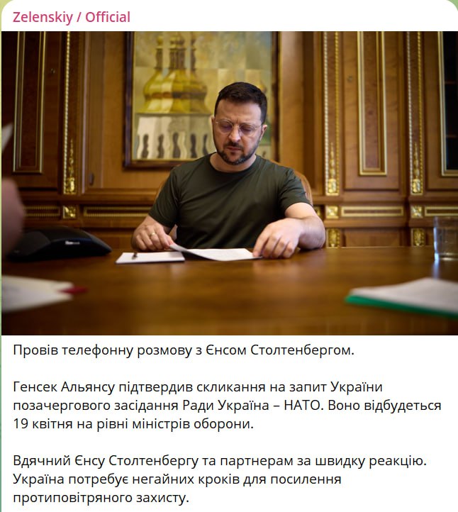 В свою очередь Зеленский сообщил, что провел телефонный разговор со Столтенбергом, и тоже упомянул заседание Совета.