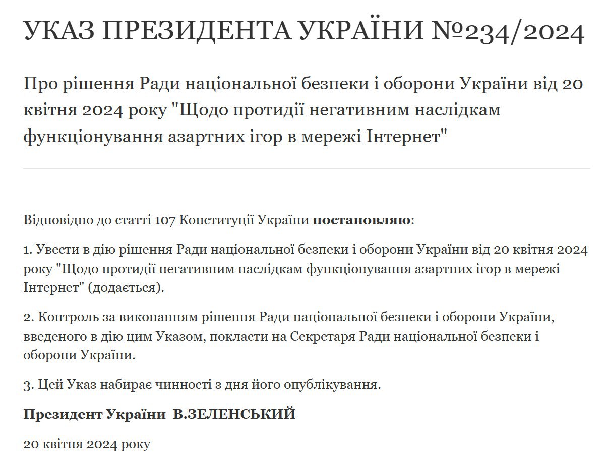 10:35 Президент Украины Владимир Зеленский своим указом ограничил азартные игры в интернете. Он ввел в действие решение СНБО, которое предполагает:
