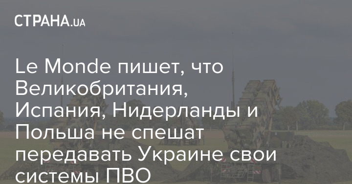 Le Monde пишет, что Великобритания, Испания, Нидерланды и Польша не спешат передавать Украине свои системы ПВО