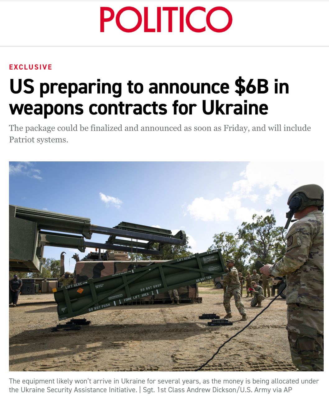 Это может стать одной из крупнейших американских поставок, которая войдет в общий пакет помощи на 61 млрд, утвержденный накануне Конгрессом.