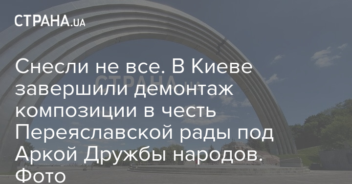 Снесли не все. В Киеве завершили демонтаж композиции в честь Переяславской рады под Аркой Дружбы народов. Фото