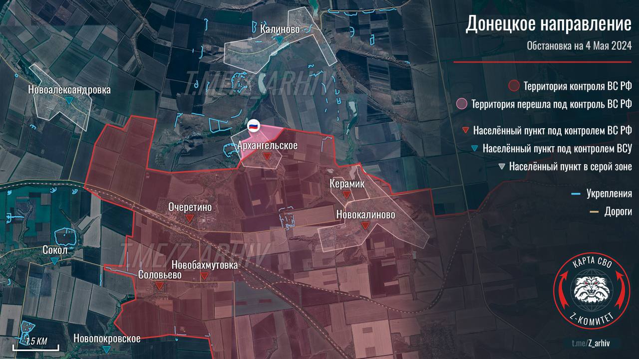 Сегодня российские военные паблики заявили, что ВСУ покинули село Архангельское близ Очеретино и населенный пункт перешел под контроль РФ.
