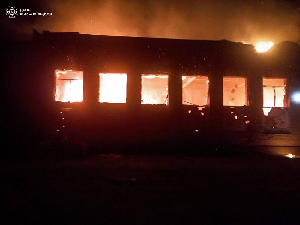 08.57 В Николаевской области дрон попал в бывший дом культуры Первомайской громады. Сейчас возгорание ликвидировано.