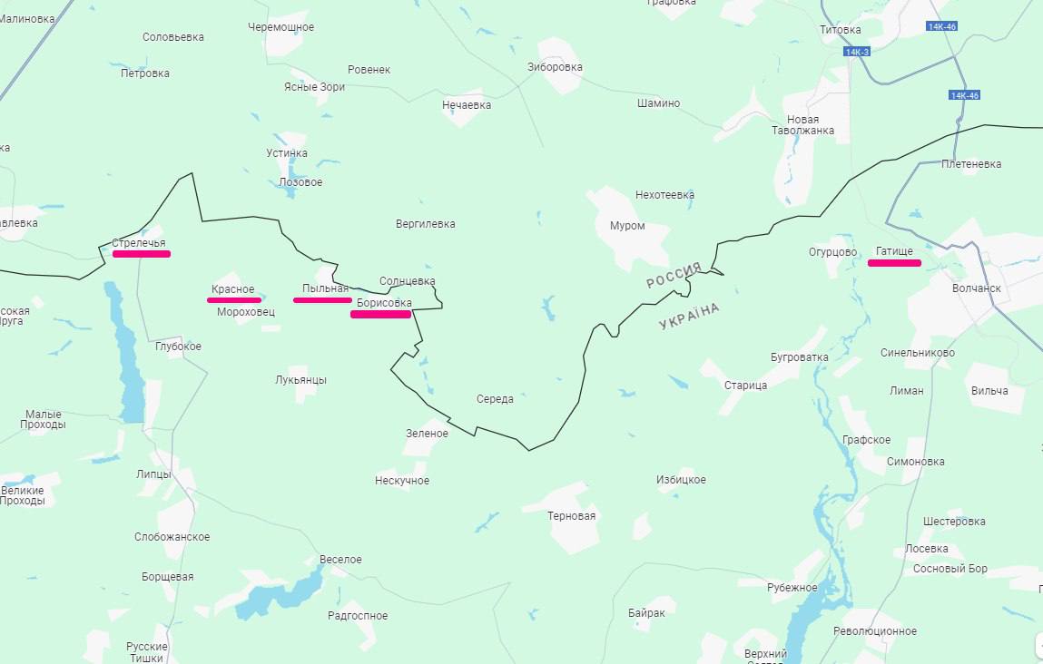 А именно села Стрелечье, Красное, Пыльная и Борисовка. Также небольшое продвижение есть на втором направлении удара - в районе Волчанска.