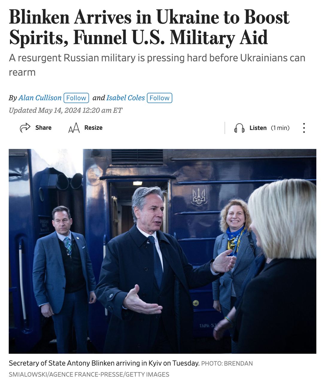 Госсекретарь США Энтони Блинкен приехал в Украину "укрепить моральный дух правительства в Киеве и помочь направить доставку" новой американской помощи.