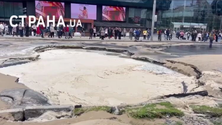 Сегодня в Голосеевском районе Киева прорвало магистральный водопровод. Вода залила дорогу возле метро "Лыбедская" и торгового центра Ocean Plаza.