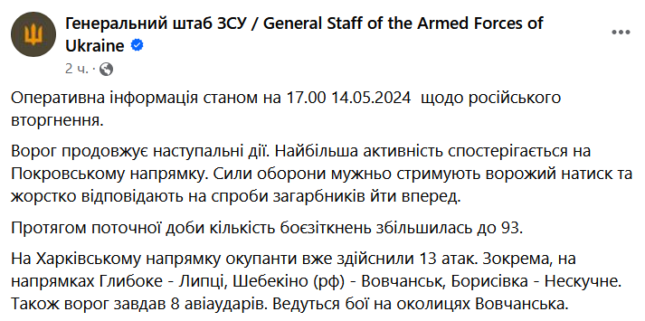 Война в Украине идет уже 811-й день. Мы следим за последними новостями и ключевыми событиями 14 мая 2024 года в обновляемом онлайне.